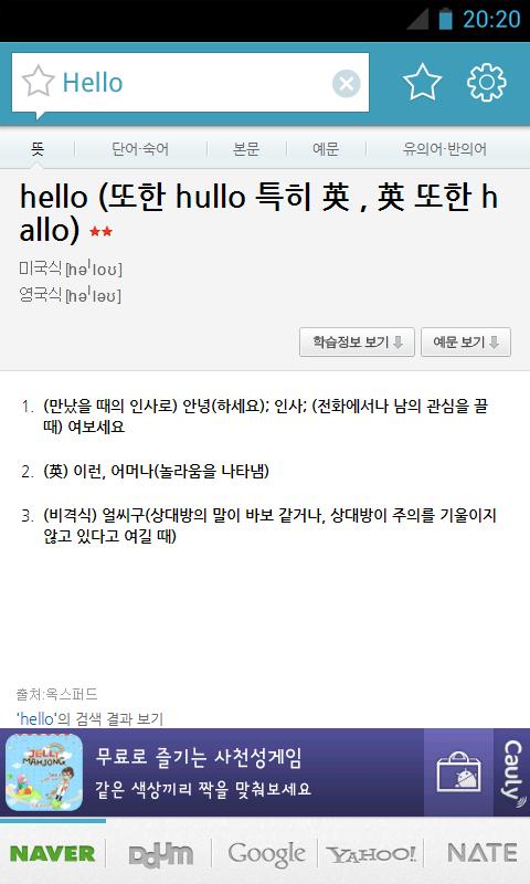 3) 네이버/다음/위키피디아 3가지 사전으로 줄이되, 정확성 및 네트워크 속도는 더 높였습니다.