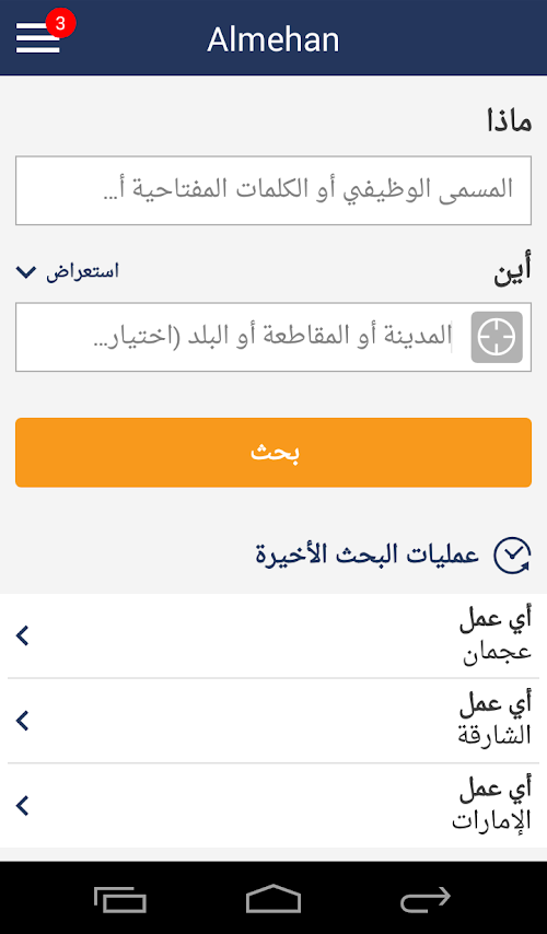 إن محرك Almehan للبحث عن عمل بنسخه الخاصة بالهواتف المحمولة متاح أمامك في كل مكان وزمان، وبهذا ستتمكن اليوم من الحصول على وظيفة أحلامك.We are improving our application. Will not be updated this version, please download the application of the new Almehan to take advantage of the latest updates and what is new.