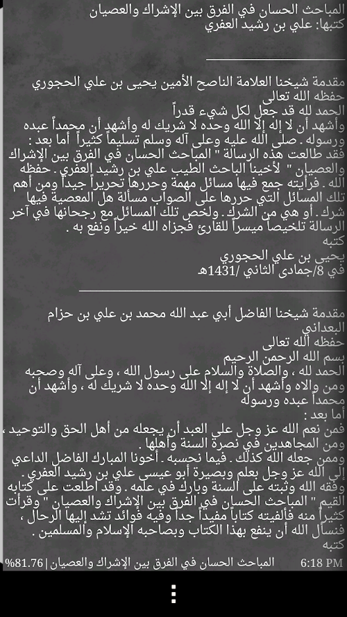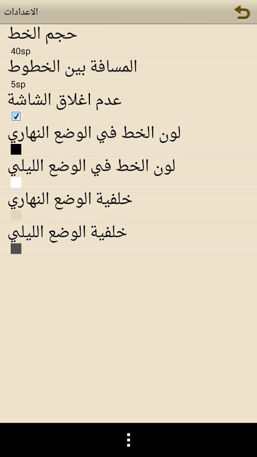 5- امكانية تعديل الخط (صغير/ كبير) وكذلك خاصية تعديل لون الخلفية وايضا خاصية الاختيار بين القراءة الليلية او في النهار .