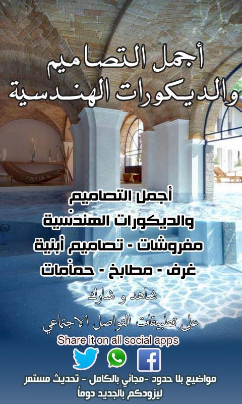 - تستطيع مشاركة محتويات التطبيق من صور و كتابات بلمسة واحدة على جميع تطبيقات التواصل الاجتماعيThe most beautiful designs and decors engineering - engineering innovations from around the world - ideas for decor and exotic furnishings and beautiful and creative