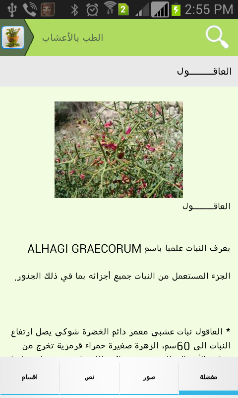 Explanations of each plant with a thumbnail image - of the benefits of this plant and how it evokes from any diseases and cures
