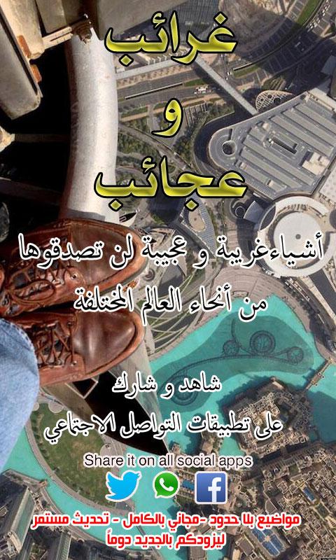 عجائب وغرائب - تطبيق مجاني - غير محدود - يحدث من النت باستمرار