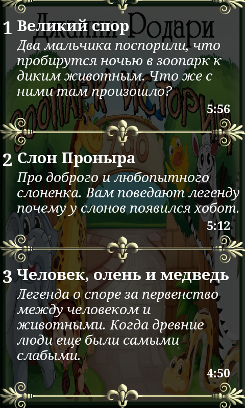 Two other, argue, stay overnight at the zoo and get acquainted with its inhabitants, who at night gain the ability to talk. Next, you will learn the six legends told by the animals.