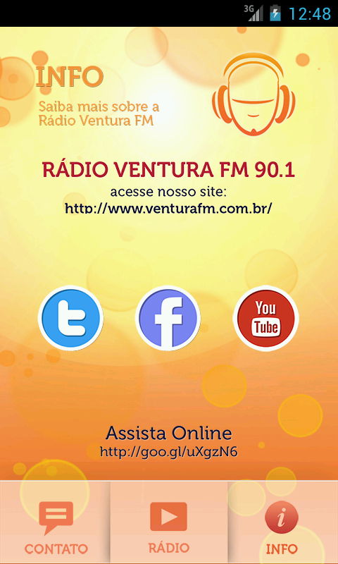 Baixe o aplicativo agora e aproveite.The Android app Radio Ventura allows access to the radio broadcast in real time via the cellular network or WiFi communication.