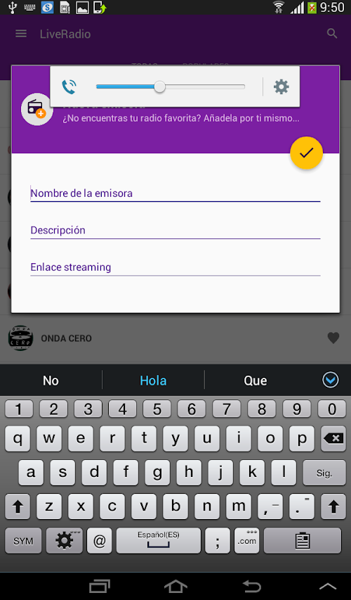 ¿No encuentras alguna emisora? Te damos la posibilidad de añadirla por ti mismo, tan solo tendrás que añadir el nombre y enlace streaming de la emisora que quieras escuchar. Podrás editarlas cuando quieras.