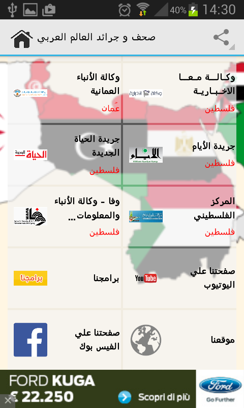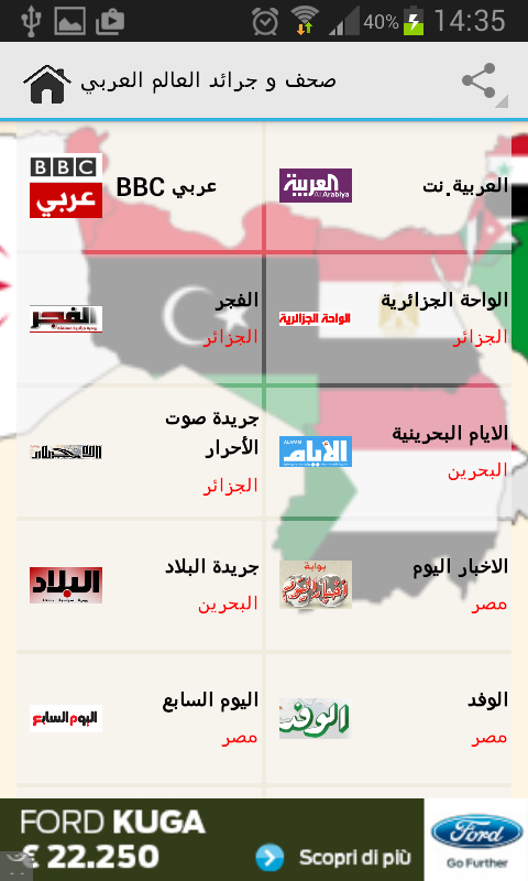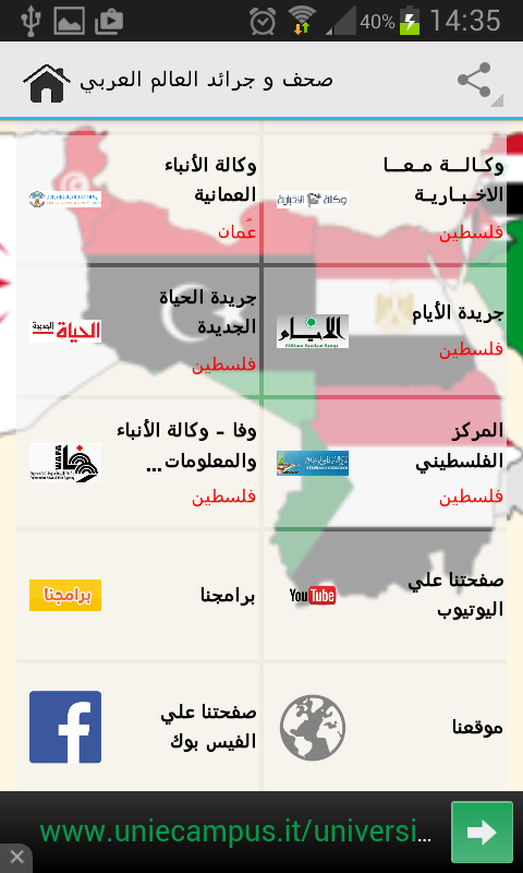 يحتوي علي مصادر اخبار تقريبا لكل الدول العربية ومنها