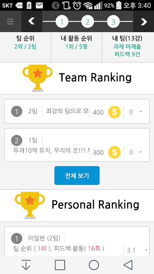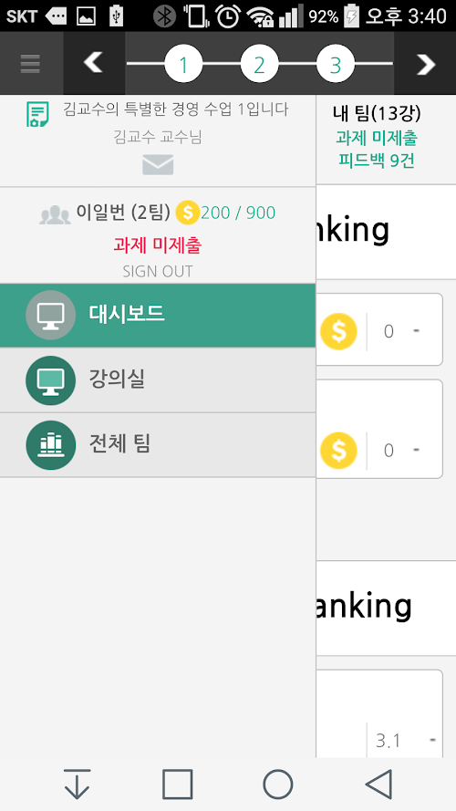- 학생 상호 또는 팀 진도 및 상대평가 제공