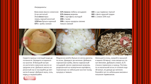 Приятного аппетита!In this book you will find about 35 pages with recipes of soups.
