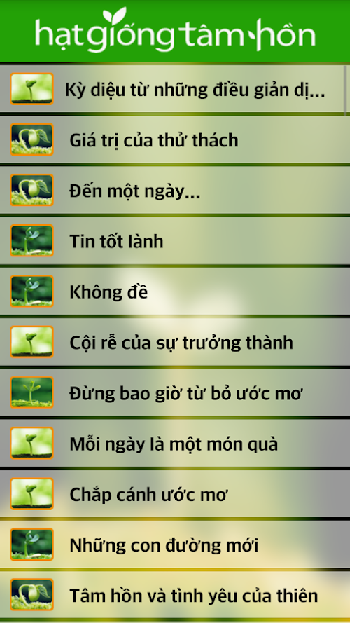 - Giao diện trực quan, bắt mắt. Hy vọng các bạn sẽ có những giây phút thú vị với ứng dụng Hạt Giống Tâm Hồn. Department of "Seeds soul" collection of tales vibes. You will find great value through the story is simple, heartwarming life and help you find balance in your life.