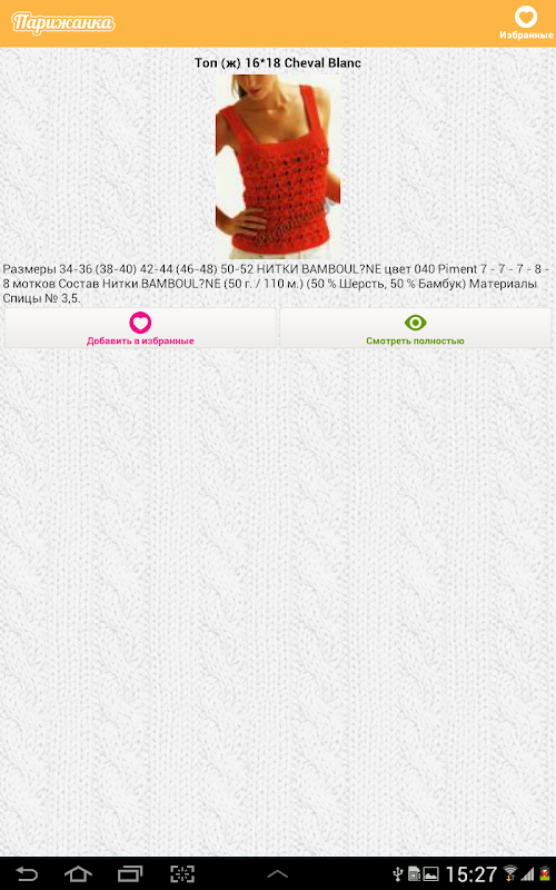 неотразимыми, всегда быть в курсе последних тенденций французской моды, то наше приложение создано для Вас. Установив его, Вы погрузитесь в увлекательный мир вязаной моды.