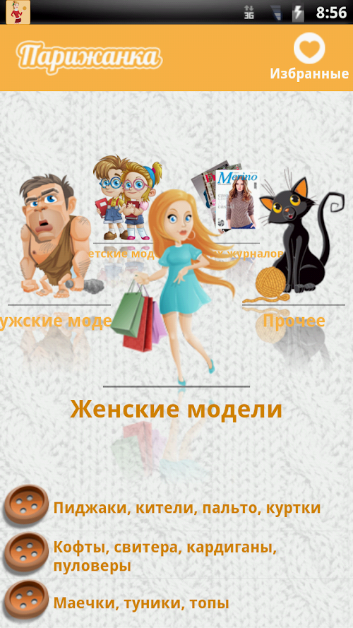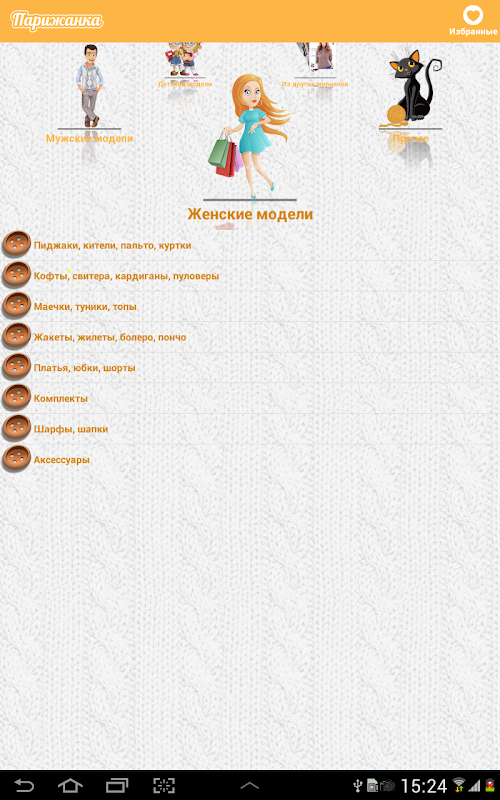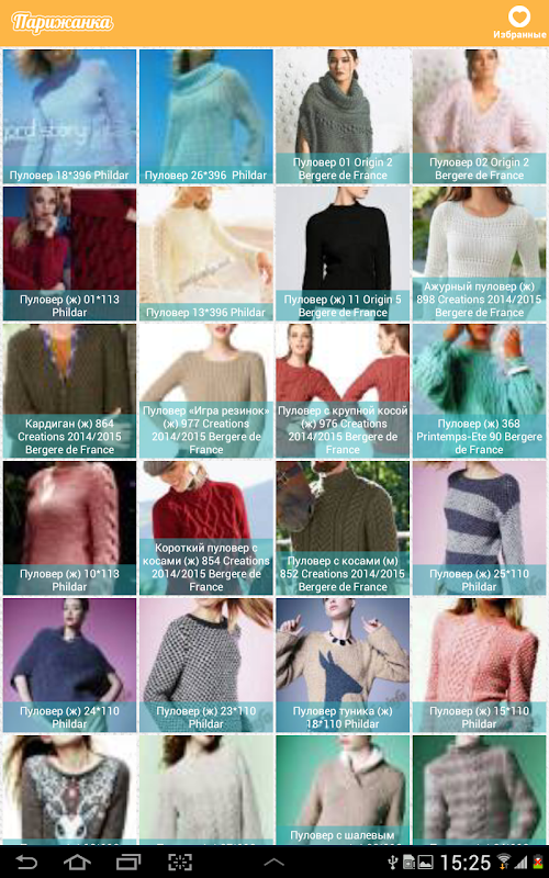 The app contains a huge number of patterns for knitting descriptions and diagrams in Russian. Female and male models, clothing and accessories for children of any age, and more.