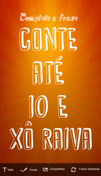 Escolha uma foto, escreva sua dica e compartilhe com os amigos. Nesse aplicativo, você pode criar mensagens personalizadas da Campanha Conte até 10 nas Escolas. Conte até 10 e seja criativo! Valente mesmo é quem não briga.