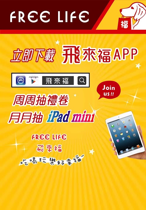 請踴躍下載[Free Life飛來福]就有機會參加"大福袋"抽獎。