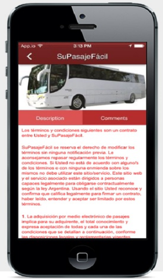 Esta es una aplicación que sirve para que los clientes puedan adquirir su pasaje de una forma rápida, fácil y segura. Cuenta con toda la información sobre viajes y promociones las cuales van a ser útiles para que nuestros clientes se enteren de las ultimas novedades de la empresa.This is an application that serves to allow customers to purchase your ticket quickly, easily and safely. It has all the information about travel and promotions which will be useful for our customers know about the latest news from the company.