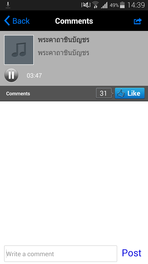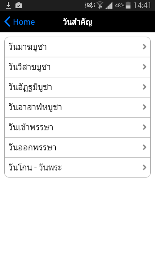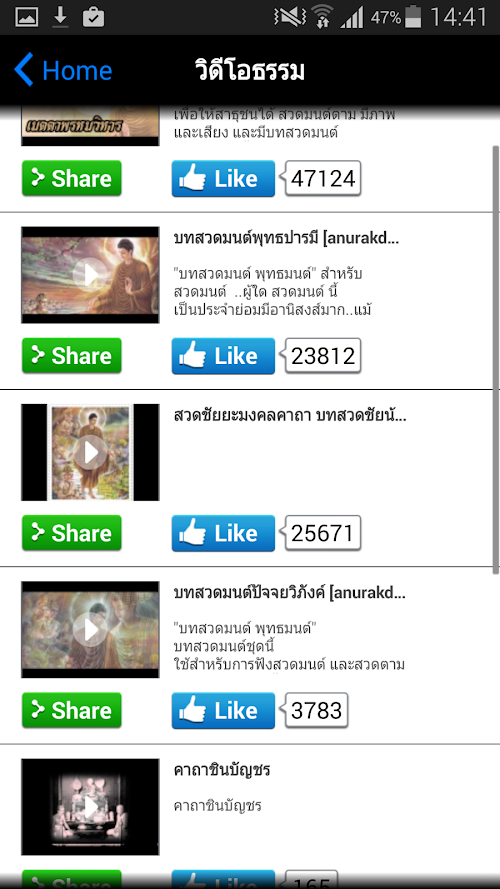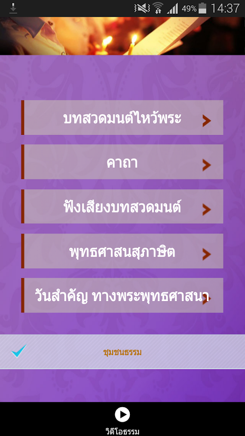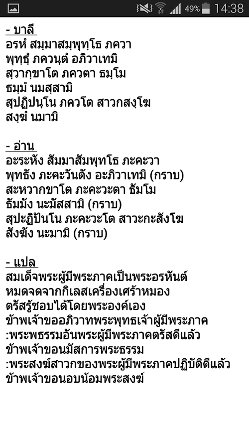 นอกจากนี้ยังมีหมวดอื่นๆที่น่าสนใจอย่างเช่นใครที่ชอบฟังเสียงสวดมนต์ก็มีเช่นกัน หรือจะเป็น พุทธศาสนสุภาษิต วิดีโอธรรม และความรู้วันสำคัญต่างๆ Applications with prayers and incantations, which comes with a translation of a comprehensive, easy to read and easy to use for starting your use of opportunities. Whether the daily prayers before bed, and the other, it can launch application quickly. Without the Internet (Only the prayers of the text).