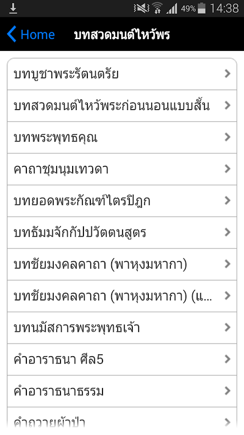 แอพพลิเคชั่น บทสวดมนต์ และคาถา ซึ่งมาพร้อมกับคำแปลที่ให้ความเข้าใจอ่านง่าย ใช้งานสะดวก รวดเร็ว เหมาะสำหรับติดเครื่องของคุณไว้ใช้งานในโอกาสต่างๆ ไม่ว่าจะเป็นการสวดมนต์ประจำวันก่อนนอน และอื่นๆ ก็สามารถเปิดแอพพลิเคชั่นได้อย่างรวดเร็ว โดยไม่ต้องต่ออินเตอร์เน็ต (เฉพาะบทสวดที่เป็นตัวหนังสือ)