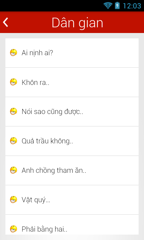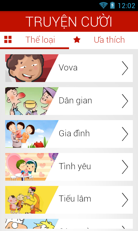 Bên trong ứng dụng truyện cười này bao gồm các thể loại: