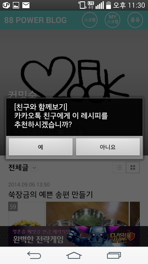 ○88파워블로그에서는 유용한 정보를 친구에게 카카오톡으로 공유하는 기능을 제공 합니다.