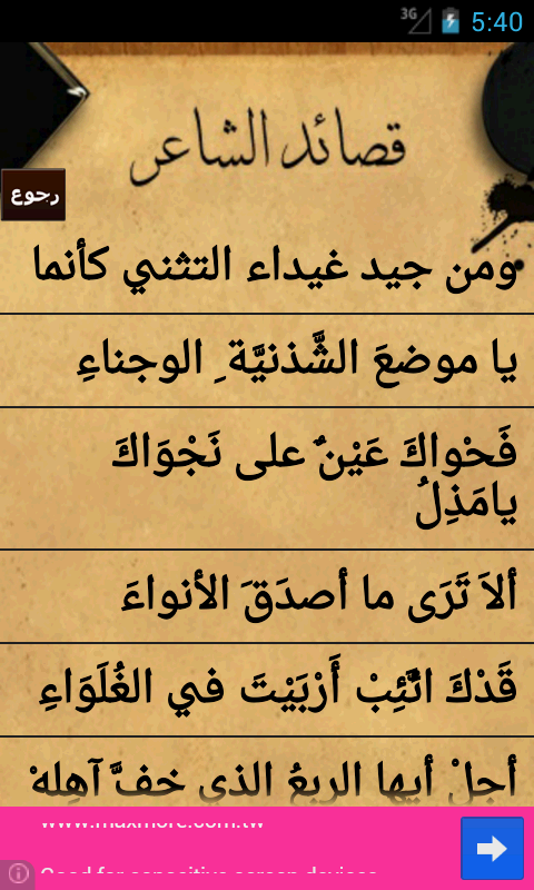 برنامج يحتوي على العديد من اشعار الشاعر الكبير ابو تمام
