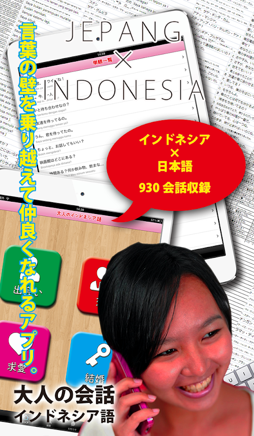 インドネシア人とステキな恋をしたいなら、このアプリ。出会いからデート、恋愛から結婚、そして別れまで、日常で使える会話を盛り込んでいます。