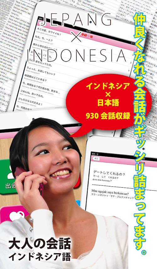 インドネシア人とステキな恋をしたいなら、このアプリ。出会いからデート、恋愛から結婚、そして別れまで、日常で使える会話を盛り込んでいます。