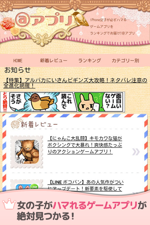 無料スマホアプリゲーム専門の女子向けレビューアプリです。