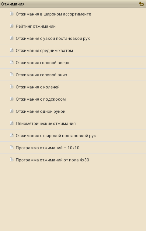 программа отжиманий от пола 4х30.Appendix "Push-ups" - a kind of a personal trainer for those wishing to start properly and successfully push-ups.