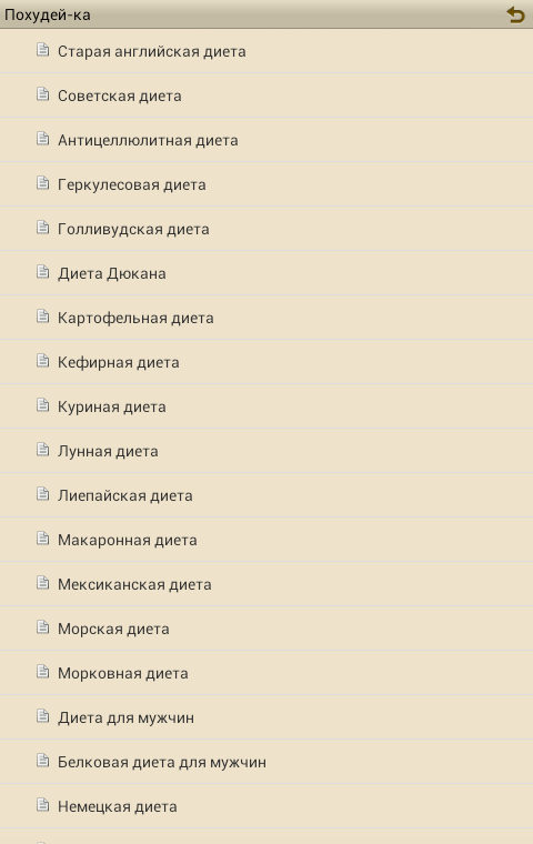 Вы желаете похудеть и метаетесь в поисках диет? В данном приложении собрано небольшое количество диет, которые помогут вам достичь успеха в похудении. И помните: прежде чем сесть на какую-либо диету, проконсультируйтесь с врачом.