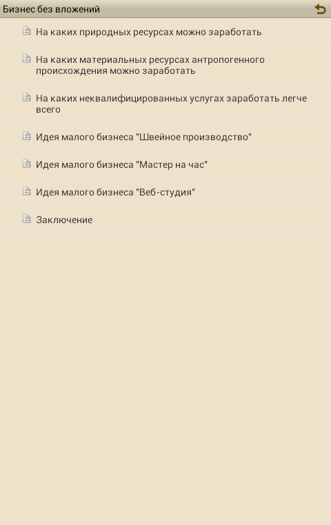Хотите открыть свой бизнес, но первоначальный капитал так и не нажили, тогда данное приложение может натолкнуть вас на открытие своего дела без капиталовложений.