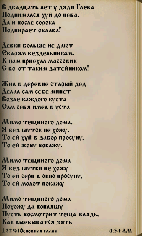 © Древомир We offer a collection of obscene limericks - a truly wonderful example of folk art! Most of them dates back to the Soviet and modern periods of our history, but some apparently goes back to the days of Imperial Russia. Limericks in the program are divided into categories: