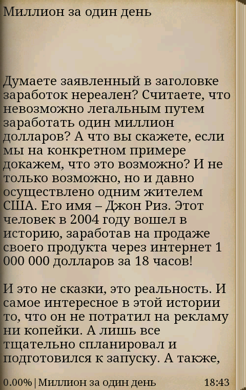 Не знаете как стать богатым? В данном приложении представлены очень интересные примеры того, как люди моментом становились миллионерами. Ознакомившись с данным тексом, вы, возможно, придумаете свою идею на миллион. Успехов!