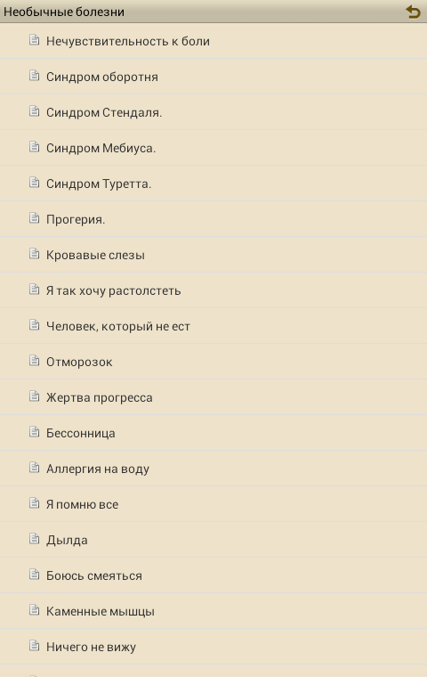 В данном приложении вы узнаете о редчайших и необычных заболеваниях:
