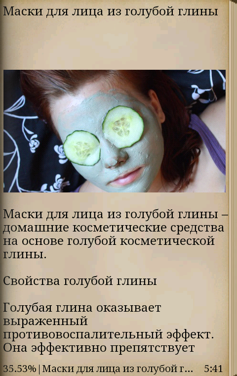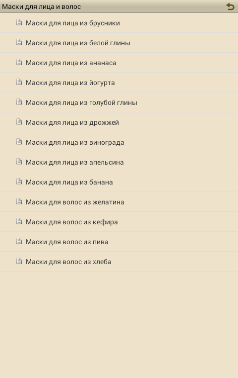Приложение содержит большой выбор масок для лица и волос. Все эти маски вы можете сделать самостоятельно в домашних условиях.
