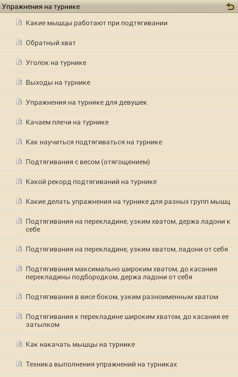 Данное приложение научит вас выполнять правильные подтягивания и различные трюки на турнике.