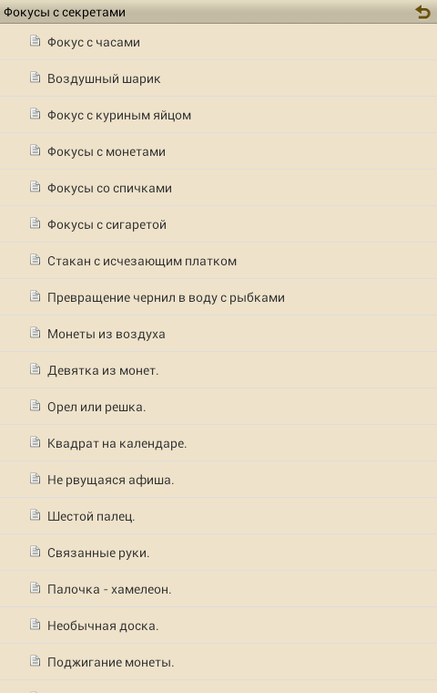 Из приложения вы узнаете секреты фокусов с монетами, часами, спичками и многих многих других.