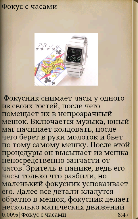 http://easysmart.ruFrom the application, you will learn the secrets of magic tricks with coins, watches, matches and many many others.