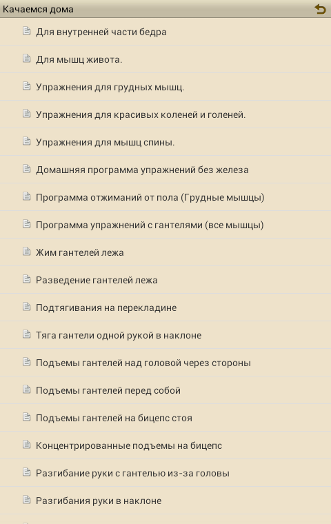 Данное приложение поможет вам накачать мышцы дома. Приложение содержит описание упражнений и различные программы тренировок:
