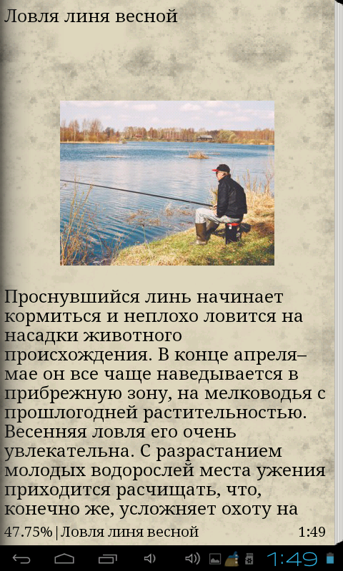 Из приложения вы узнаете о весенней рыбалке, о том как ловить разные виды рыб при разных погодных условиях.