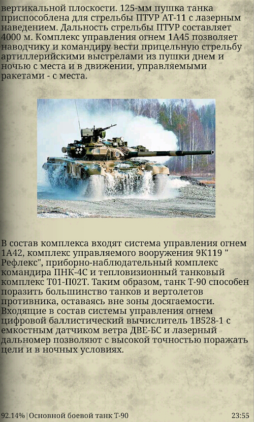 Приятного ознакомления!This book presents the modern Russian tanks, history, illustration and a brief description of the characteristics of these tanks as: