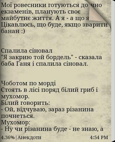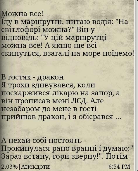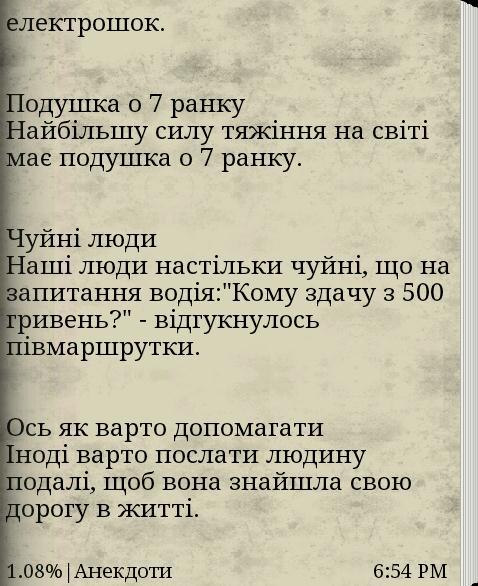 Very good collection of anecdotes and jokes only in Ukrainian. The book includes the best and qualifying anecdotes and jokes on various topics. You do not need to download different books, all have gathered for you in this book!