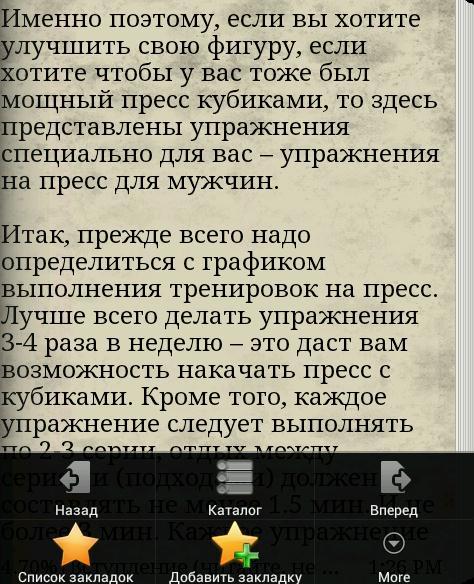 Отличное руководство для мужчин как накачать рельефный красивый пресс дома. В книге много эффективных упражнений которые подойдут для каждого. Также есть советы, которые помогут максимально быстро достичь результата. Great guide for men how to build a beautiful embossed press home. The book contains many effective exercises which are suitable for everyone. Also there are tips to help you achieve results as quickly as possible.