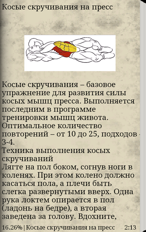 В приложении представлены материалы с сайта http://girrya.ruSoon summer or an important event? And you have accumulated tummy? Come on! All is not lost. Workout is never too late. This application will help you pump up the press in a short time, if you stick to the rules of exercise. The annex presents training schedule depending on what you need: stamina, strength or weight.