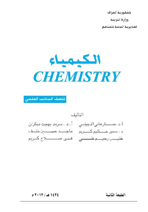عزيزي الطالب او الطالبة ... الكيمياء للصف السادس علمي هو احد المواد المنهجية للدراسية للمرحلة المنتهة للسادس علمي وضمن أمتحان البكالوريا في أطار المناهج للدراسة العراقية لوزارة التربية في جمهورية العراق , حيث سيتضمن الكتاب 320 صفحة ... نرجوا ان ينال اهتمامكم مع خالص التقديرThere, the student or the student ... chemistry sixth-grade science is one of methodological materials for the study of phase Almenthh of the sixth scientific and within the baccalaureate exam in the framework of the curriculum for the study of the Iraqi Ministry of Education of the Republic of Iraq, which will include a book 320 pages ... please to receive your attention Sincerely
