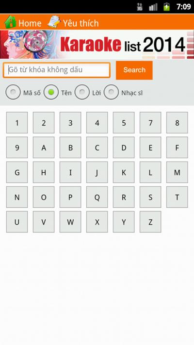 Chúc bạn vui vẻApplication with lookup 23 791 karaoke song tracks on 2 types of receivers Arirang and California. You can look under the Code, song name, lyrics and composer.