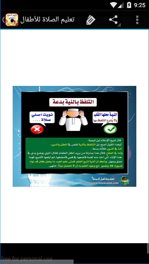 The application of Islamic education for children (without Net) aim to teach children all about prayer as it explains all prayer timings and how to pray. And from this application except the child learns a set vocabulary and terms such as: bowing, prostration, and the light, the dawn prayer, the afternoon prayer, Ashi prayers.
