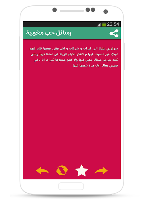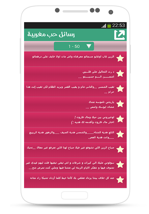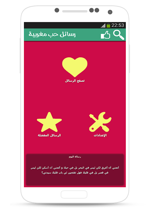 Thanks to the application of love Moroccan messages no longer need to write letters, just open the application and select a message that expresses your feelings and then send it to your lover or your sweetheart.