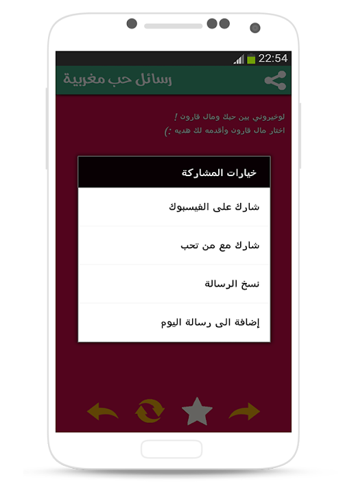 بفضل تطبيق رسائل حب مغربية لم تعد بحاجة لكتابة الرسائل، فقط قم بفتح التطبيق وإختار الرسالة التي تعبر عن مشاعرك ثم ارسلها لحبيبك أو حبيبتك.