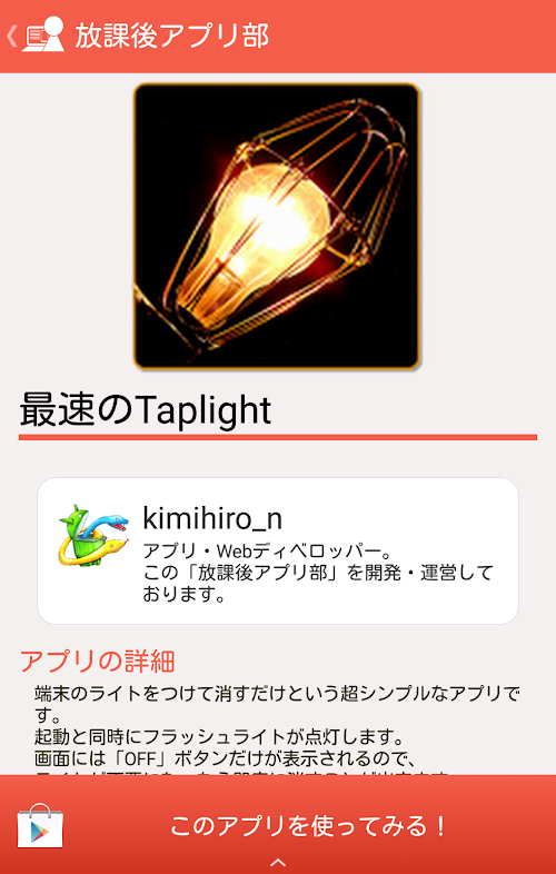 * 放課後アプリ部に登録されているAndroidアプリが見れます