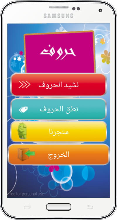 من خلال هذا التطبيق يمكنك تعليم الحروف العربية بشكل مبسط و ممتع لطفلك.