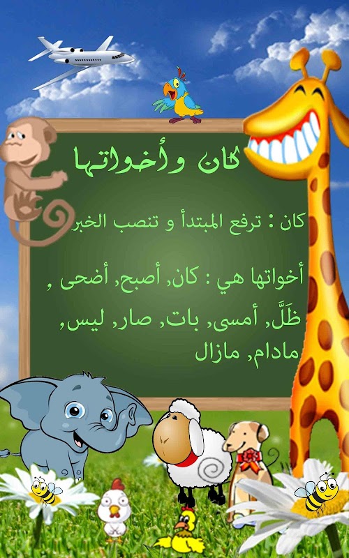التطبيق يساعد الطفل على تعليم الحروف الابجدية للاطفال وبعض القواعد اللغة العربية مثل المبتدأ والخبر وايضا يحتوي على الالعاب ليساعد الطفل على التعلم بطريقة مرحة وجميلة , كذلك الجمل المستخدمة توصل للطفل معلومة بطريقة غير مباشرة ليتعلم العلوم وغيرها